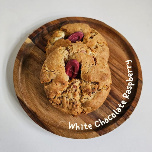 Sweet vanilla dough with tangy raspberry chunks and smooth white chocolate. Fresh, fruity and perfectly balanced.
