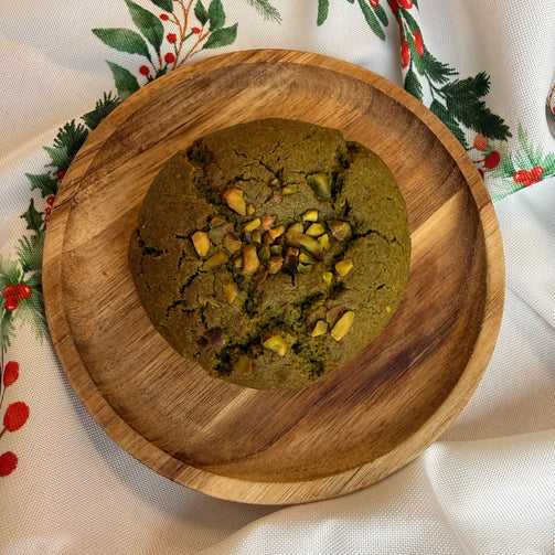 Our signature matcha cookie filled with creamy pistache cream and topped with roasted pistachio bits. A perfect match-a!