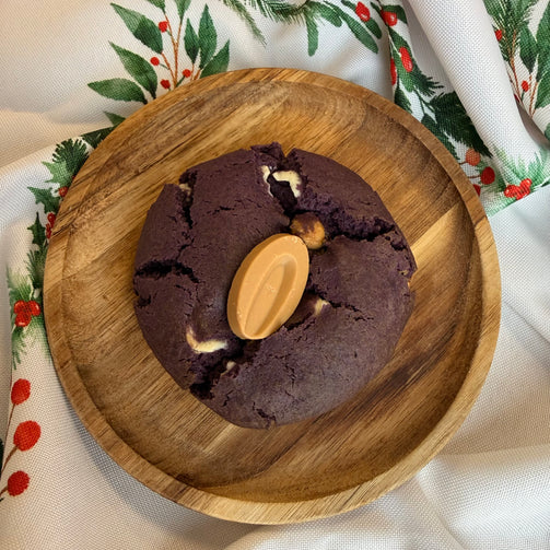 A dreamy purple ube-flavoured cookie packed with premium white chocolate and caramelised gold chocolate.